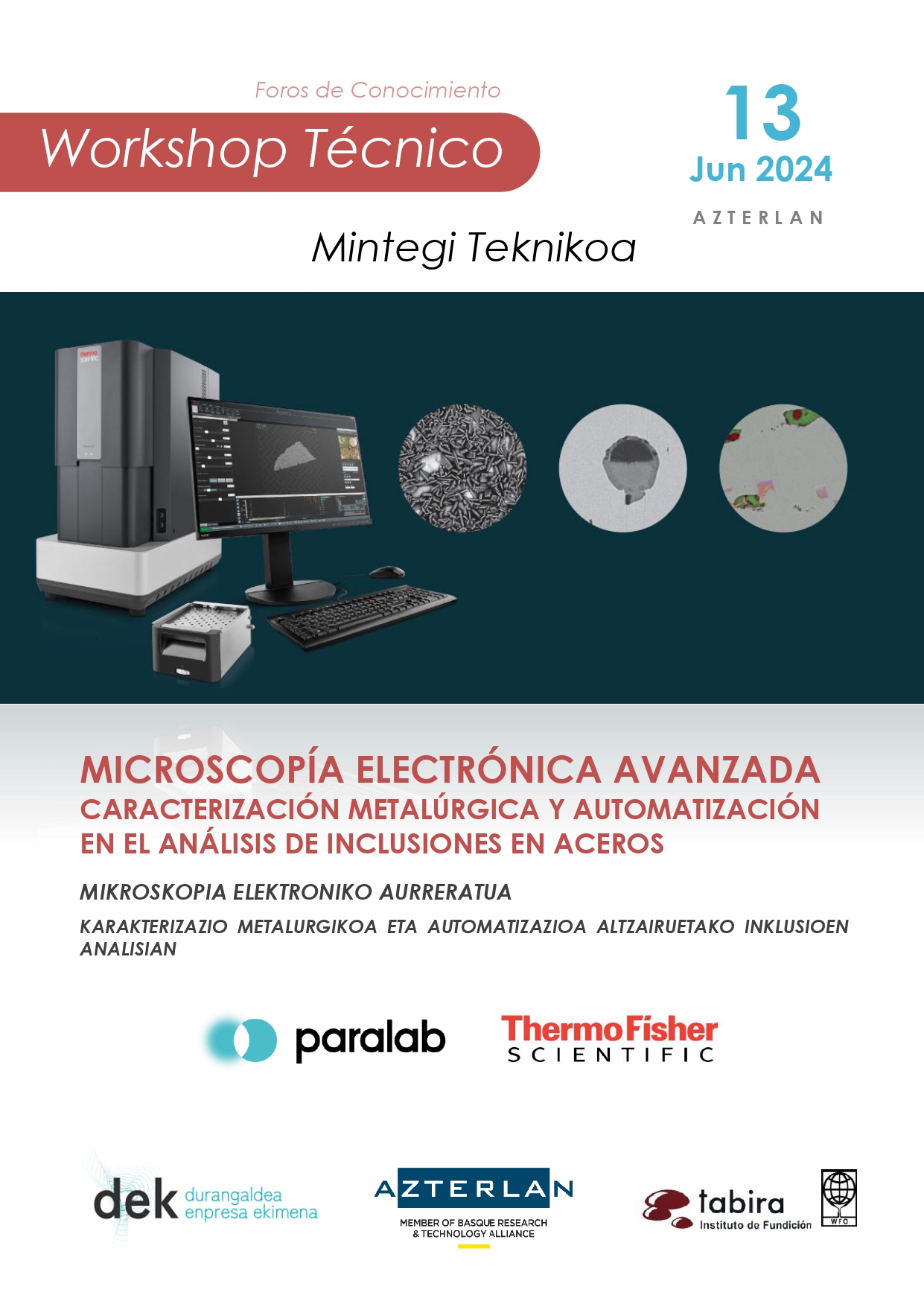 El próximo 13 de junio el Centro de Investigación Metalúrgica AZTERLAN acoge esta sesión técnica dedicada a la microscopía electrónica.