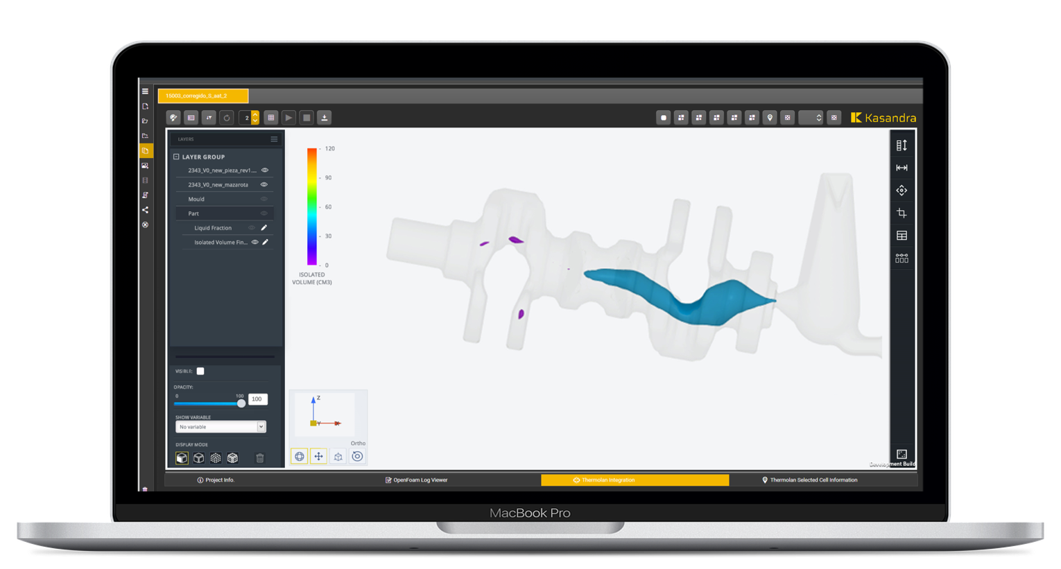 To incorporate metallurgical quality into the fill simulation, Kasandra® needs to incorporate a thermal analysis system. Although the standard configuration of the system offered by AZTERLAN contemplates the application of Thermolan®, the Kasandra® system can be configured with other thermal analysis tools on the market.