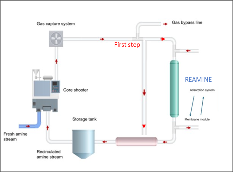 The solution proposed by the LIFE REAMINE project integrates an adsorption column with a membrane device, creating an energy-efficient treatment system. This configuration effectively reduces amine emissions while facilitating the recovery of liquid amines. It will improve the efficiency of gas treatment, reduce cold box core manufacturing costs, and demonstrate its replicability across the entire foundry industry.