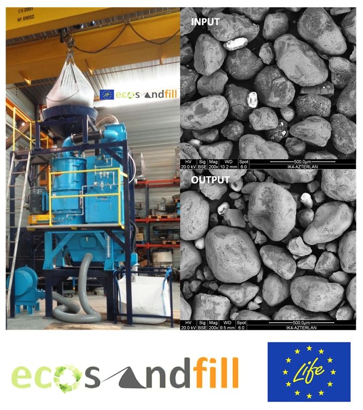 The residual foundry sands are classified as non-hazardous non-inert waste and must be handled by authorized agents, which is a clear restriction of recovery. Through the LIFE ECO-SANDFILL project, the working team seeks to overcome these barriers by introducing a regeneration process to obtain a systematized quality sand sub-product of low environmental impact. More specifically, the project is focused on the reuse of this regenerated sand in the field of construction and the casting process itself.