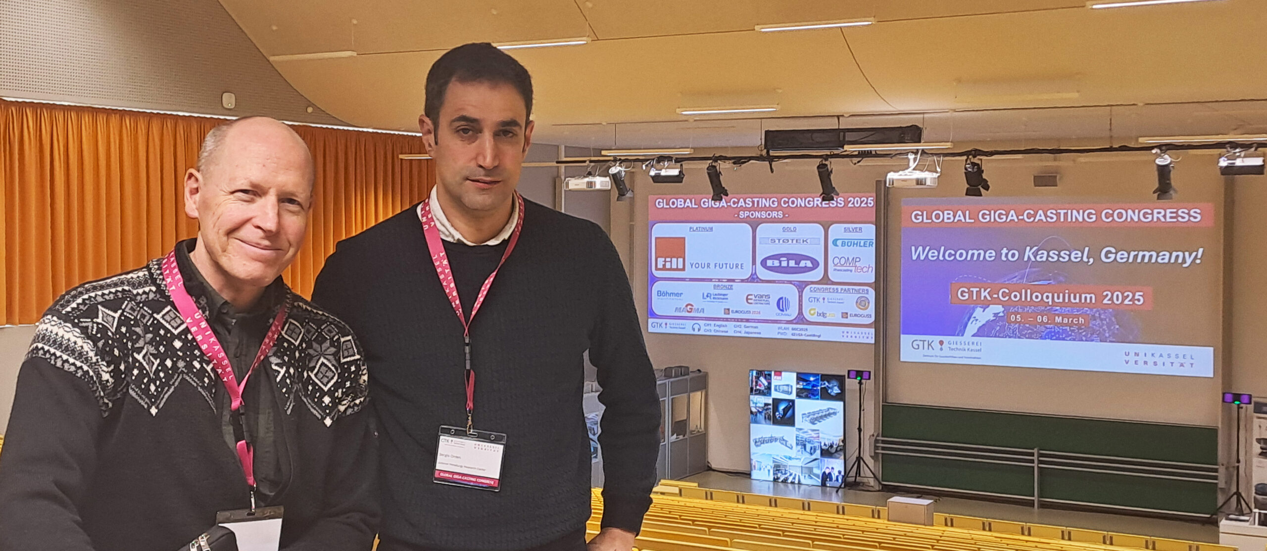 Los investigadores de AZTERLAN especializados en Materiales Ligeros y tecnologías de inyección Emili Barbarias (izda.) y Sergio Orden (dcha.) en el Global Giga-casting Congress.