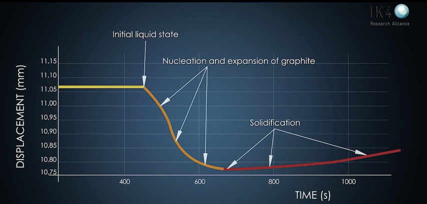 La precipitación de la fase grafítica es clave en este tipo de materiales, tanto desde el punto de vista de propiedades mecánicas, como para manejar el balance contracción/expansión de las distintas fases que se forman y que regulan la tendencia del metal a presentar defectos de micro rechupe.