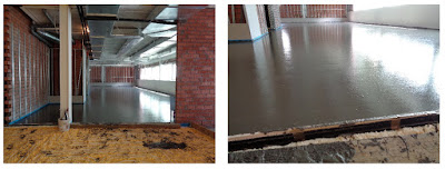 La primera aplicación se trata de un mortero térmico colocado sobre el suelo de climatización radiante de la planta baja del edificio (660 m2), fabricado a partir de un 5% de arena de fundición, que mantiene las propiedades mecánicas y térmicas del mortero de referencia y experimenta un menor consumo de agua durante su aplicación.