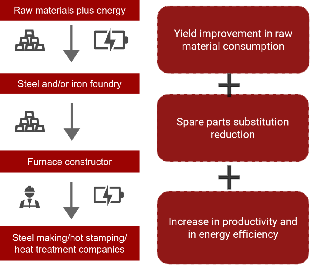 En el seno del proyecto se crearán al menos dos aceros inoxidables refractarios y un recubrimiento cerámico a través de modelizado avanzado, hidrosolidificación, LMD y tecnologías innovadoras de aplicación de recubrimientos cerámicos en vigas y anillos de hornos de estampación en caliente con sensores embebidos.