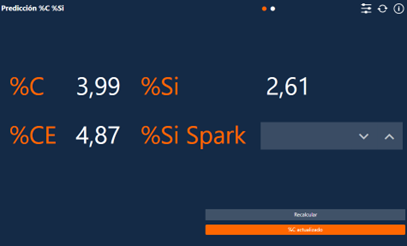 • Si lo deseas, puedes insertar el %Si obtenido en el espectrómetro. Podrás  corregir el %C en caso de que sea incorrecto.