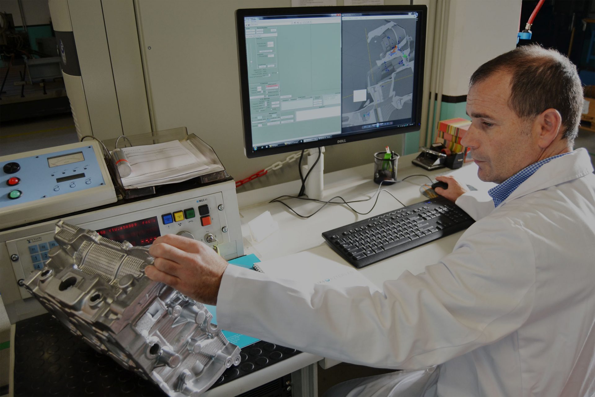 El ensayo transforma el componente físico en uno virtual (imagen 3D construida a partir de secciones) sobre el que se puede trabajar mediante diferentes herramientas, obteniendo información de su calidad interna (sanidad, características dimensionales del defecto, etc.).