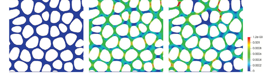Distribución de las tensiones en la microestructura según aumenta la deformación aplicada.