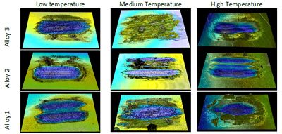 Muestras de desgaste a diferentes temperaturas en algunas aleaciones estudiadas