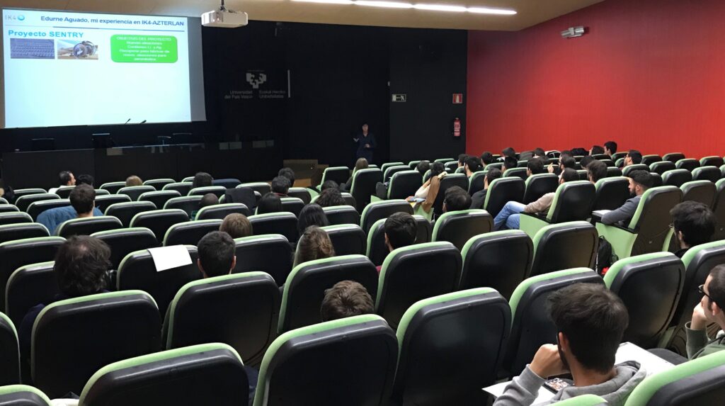 Con el fin de presentar las oportunidades que ofrecen los 7 Centros Tecnológicos que componen IK4 a los que serán los/as futuros/as profesionales de nuestra industria, la Doctora Edurne Aguado, investigadora del Centro de Investigación Metalúrgica IK4-AZTERLAN, y Francisco Febrer, miembro del equipo de RR.HH. de IK4-TEKNIKER, han compartido algunas de sus experiencias en el día a día de sus organizaciones.