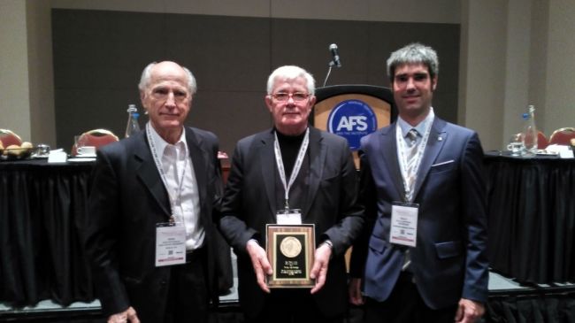 Recogida del reconocimiento a la mejor contribución técnica AFS Metalcasting Congress 2016. De izquierda a derecha, los señores Stefanescu, Suárez y Larrañaga.