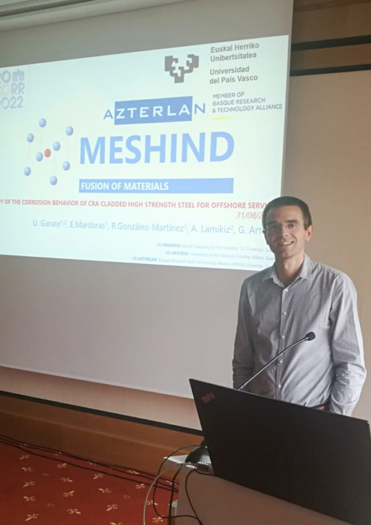 Unai Garate (Director de la empresa MESHIND), ha compartido la ponencia “Study of the corrosion behavior of CRA cladded high strength steel for offshore service” dentro del programa oficial de este marco de trabajo internacional celebrado recientemente en Berlin, como resultado del intenso trabajo de investigación llevado a cabo en colaboración con el Centro de Investigación Metalúrgica AZTERLAN y con la Universidad del País Vasco EHU-UPV.