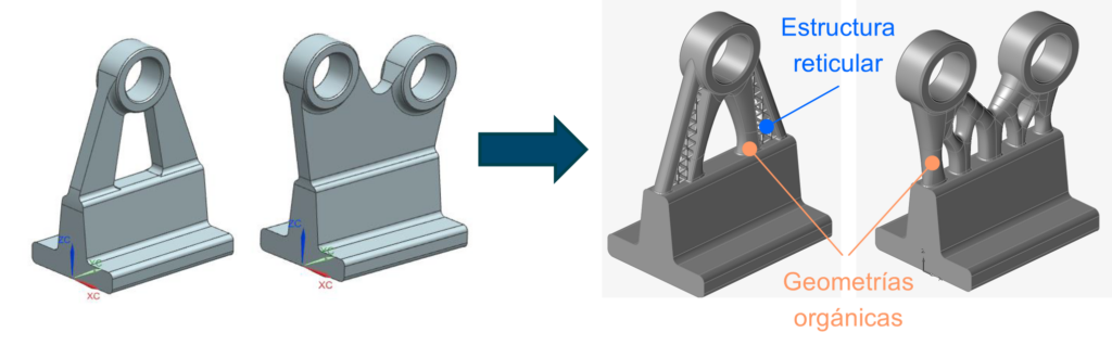 Asimismo, teniendo en cuenta las bondades de la fabricación aditiva en polvo, para el caso de la hibridación de aditiva con forja, el equipo ha rediseñado los demostradores adaptándolos a las dos tecnologías utilizadas (LMD y L-PBF). “Los nuevos diseños que se han planteado combinan funcionalidad con aligeramiento. Con este fin se basan en la utilización de estructuras reticulares y orgánicas (en el caso de la tecnología L-PBF)”.